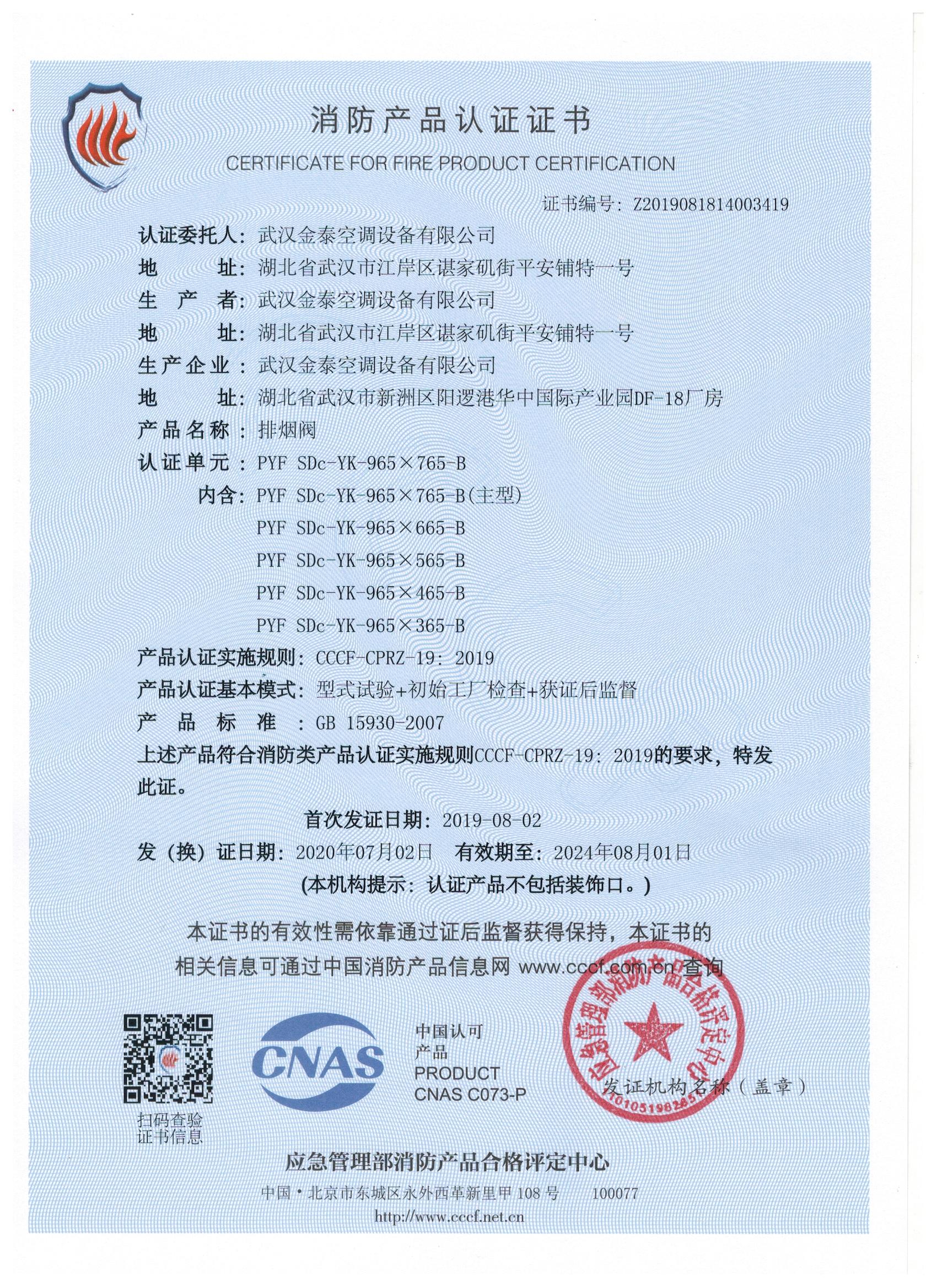 武漢金泰空調設備有限公司 是國內長期專注于民用風機、工業風機領域的標桿企業:專業生產消防排煙風機系列、排煙防火閥系列、一般通風機系列(軸流式、離心式、屋頂式、壁式、隧道式、射流式)、風口、風管等消防及通風設備。產品經公安部消防產品合格評定中心評定符合消防產品CCC標準;經中國合格評定國家認可委員會認證的檢驗所檢驗合格;經國家防火建材質量監督檢驗中心(四川中心)火燒實驗,耐火性能達標。